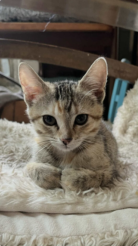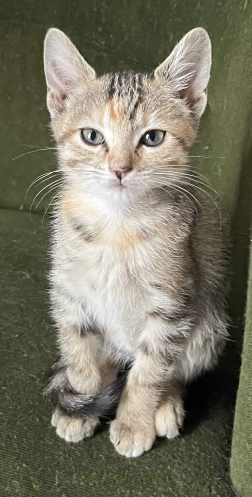 Cette petite puce à la bouille totalement craquante fait partie d’une petite fratrie de rescapés. En effet, sa maman avait trouvé refuge dans le cabanon d’un jardin d’un particulier.