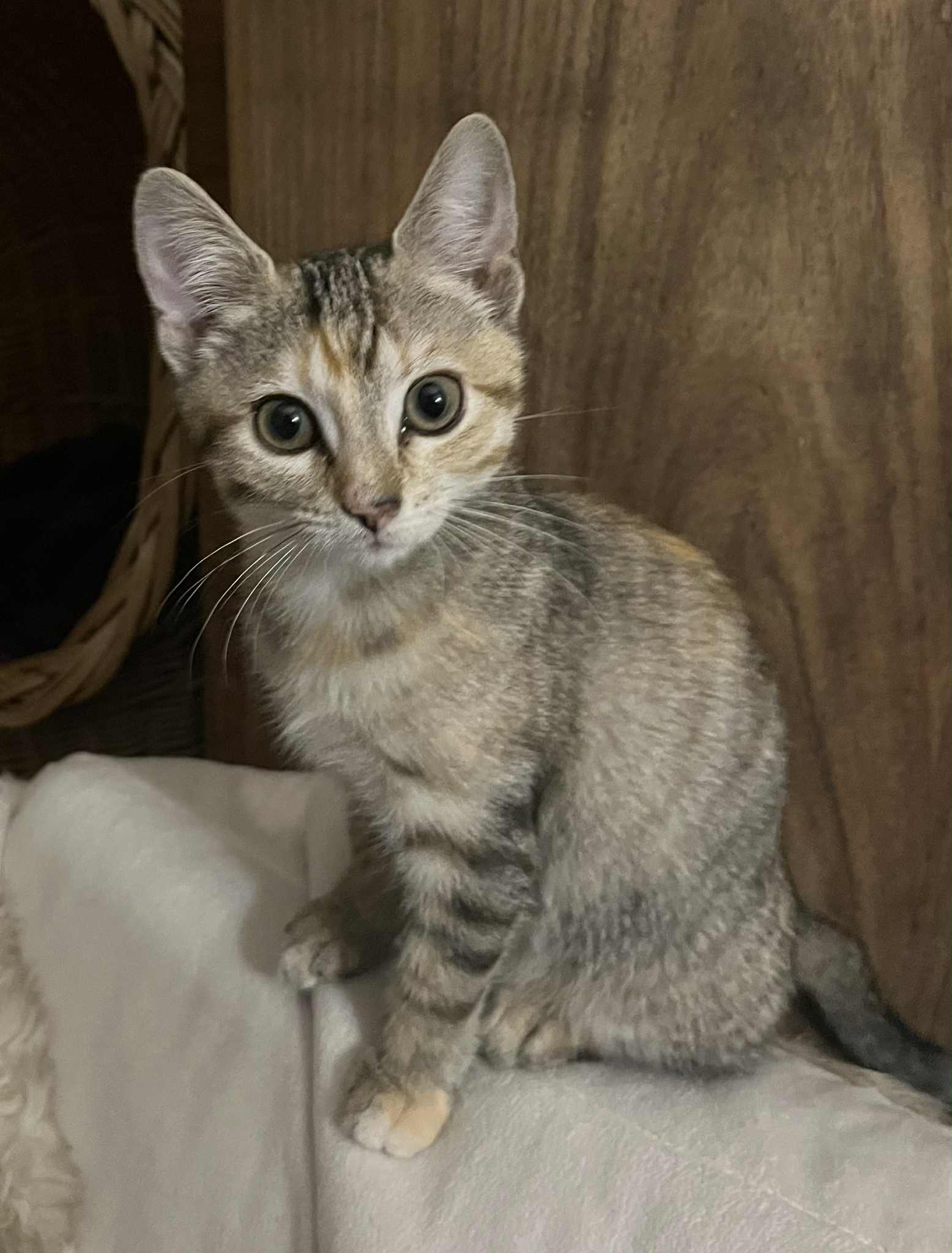 Pimprenelle est une chatonnne de 3,5 mois en total amour avec les humains et les autres chats. Elle aime la compagnie et n’apprécie pas de rester trop longtemps seule.
