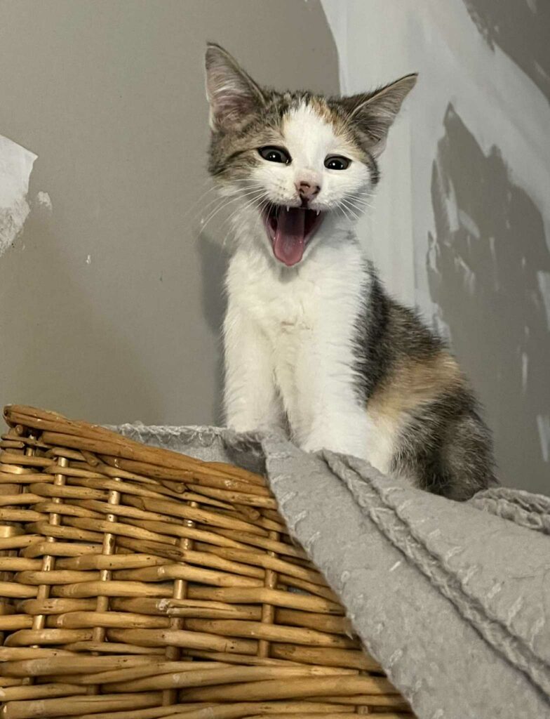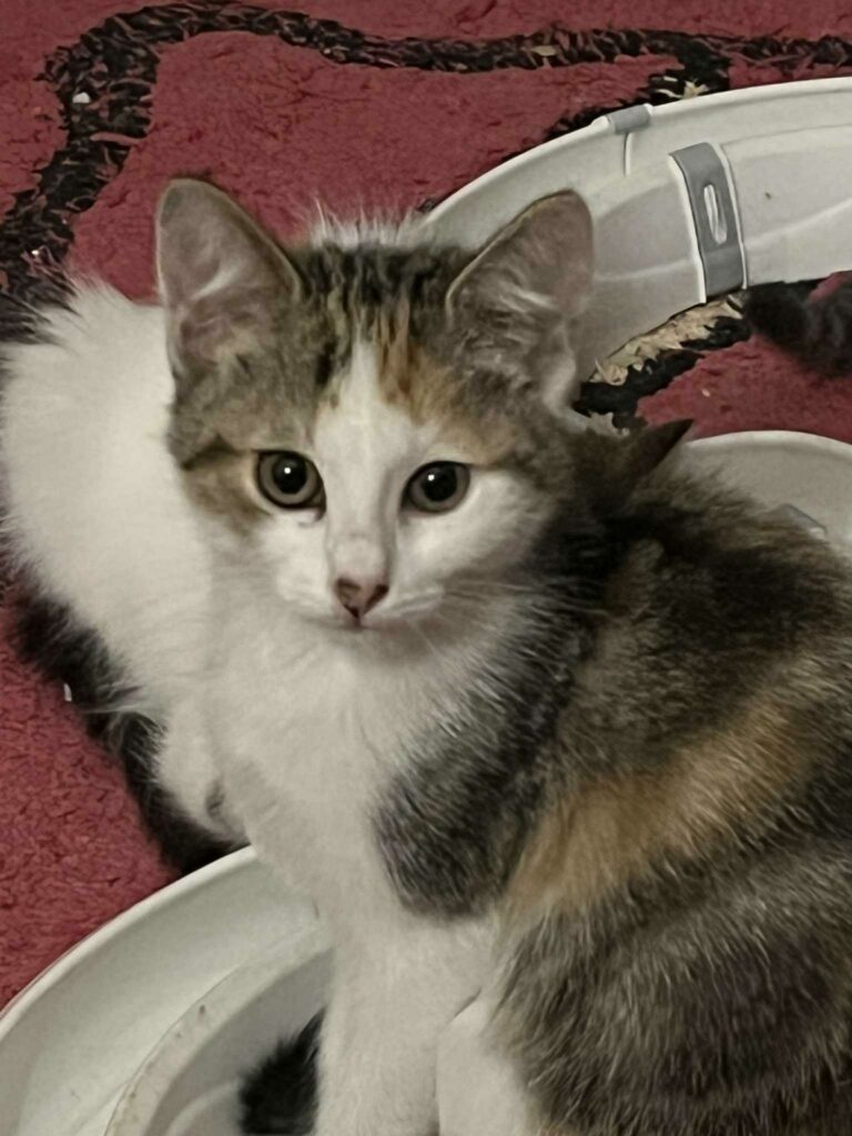 Adrienne est une petite guerrière au cœur tendre âgée de 3 mois et demi, issue d’une fratrie de 4 chatonnes très complices. Sociable, gentille et OK chats, elle est pleine d’énergie et de curiosité.