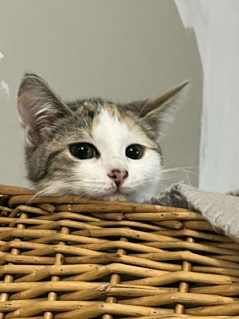 Une fois rassurée, elle devient affectueuse et joueuse, toujours prête à partager un moment avec ses congénères. Elle a grandi entourée d’autres chats, notamment Vadim, un petit rouquin qu’elle a littéralement adopté et à qui elle apprend toutes les bêtises possibles… avec beaucoup d’amour.