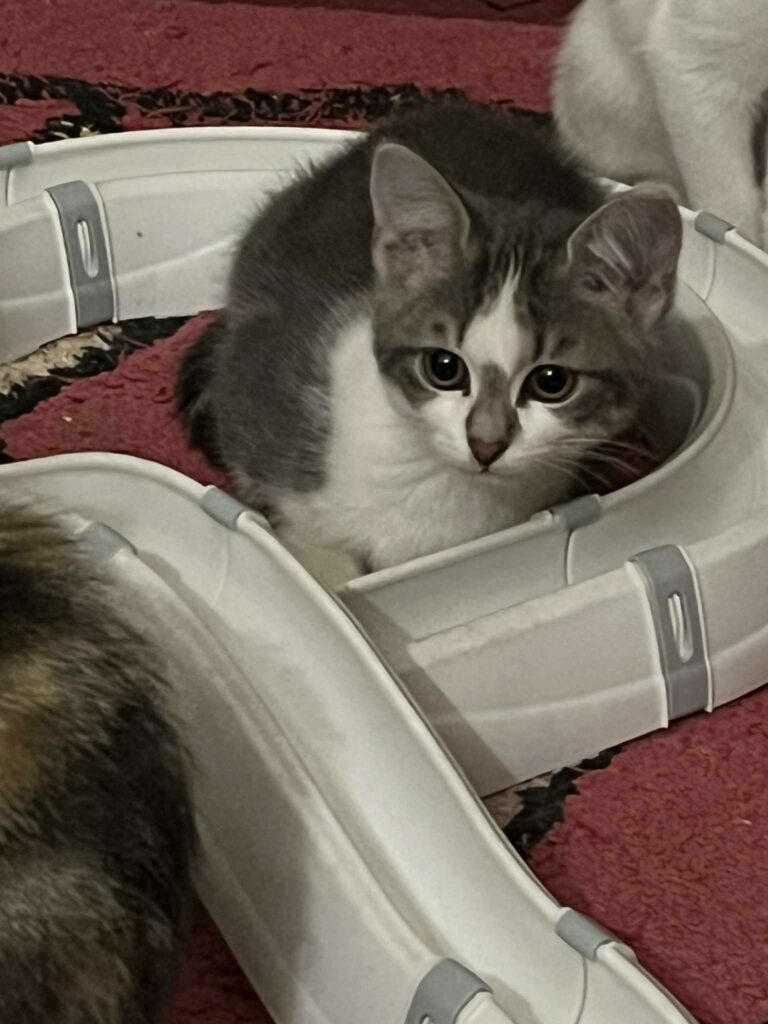 Andréa fait partie d’une fratrie de 4 chatonnes élevées par leur maman. Très sociable, douce et OK chats, elle est vive, joueuse et extrêmement attachée à la présence d’autres félins.