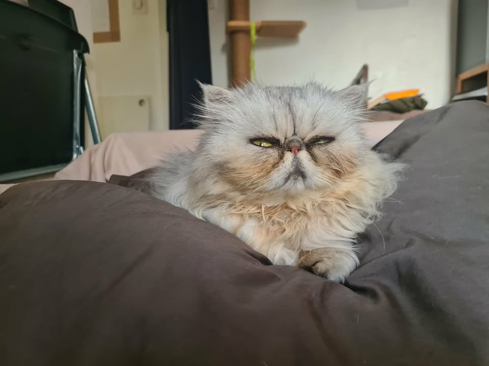 Côté habitudes, Archibald mange exclusivement de la pâtée. Il est également très coopératif pour le toilettage, ce qui facilite son entretien.