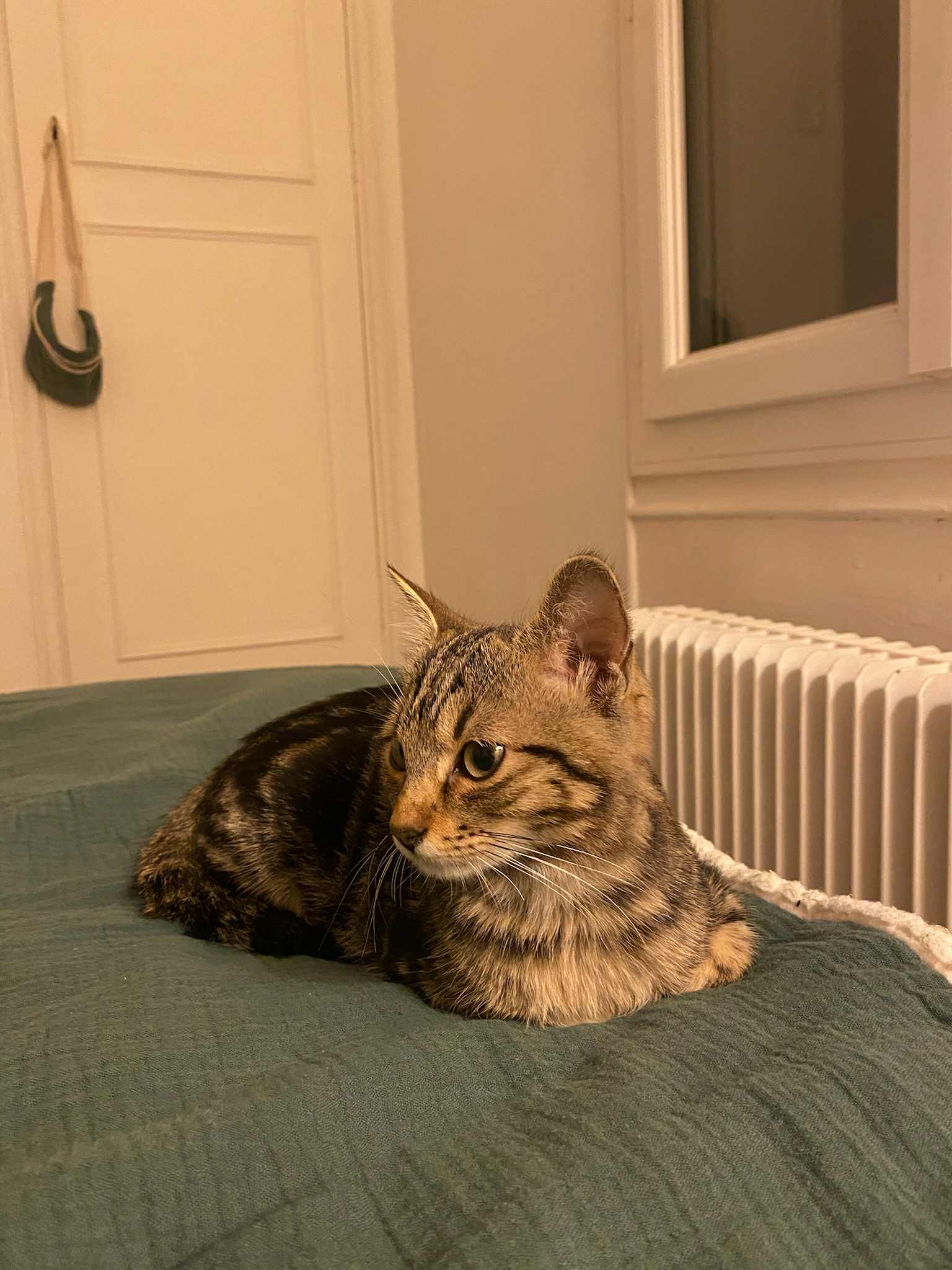 C’est une chatonne qui préfère la compagnie à la solitude. Elle est très propre et autonome, est capable de jouer avec n’importe quoi mais aussi de dormir sur n’importe quoi/qui.
