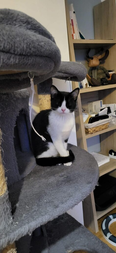 Il recherche une famille présente, prête à lui offrir un environnement stimulant, de l’attention et beaucoup d’amour. L’idéal serait un foyer où vit déjà un autre chat, afin qu’il puisse partager jeux et complicité.