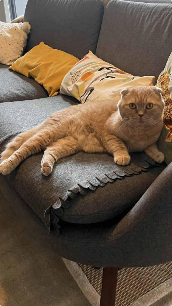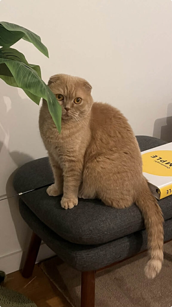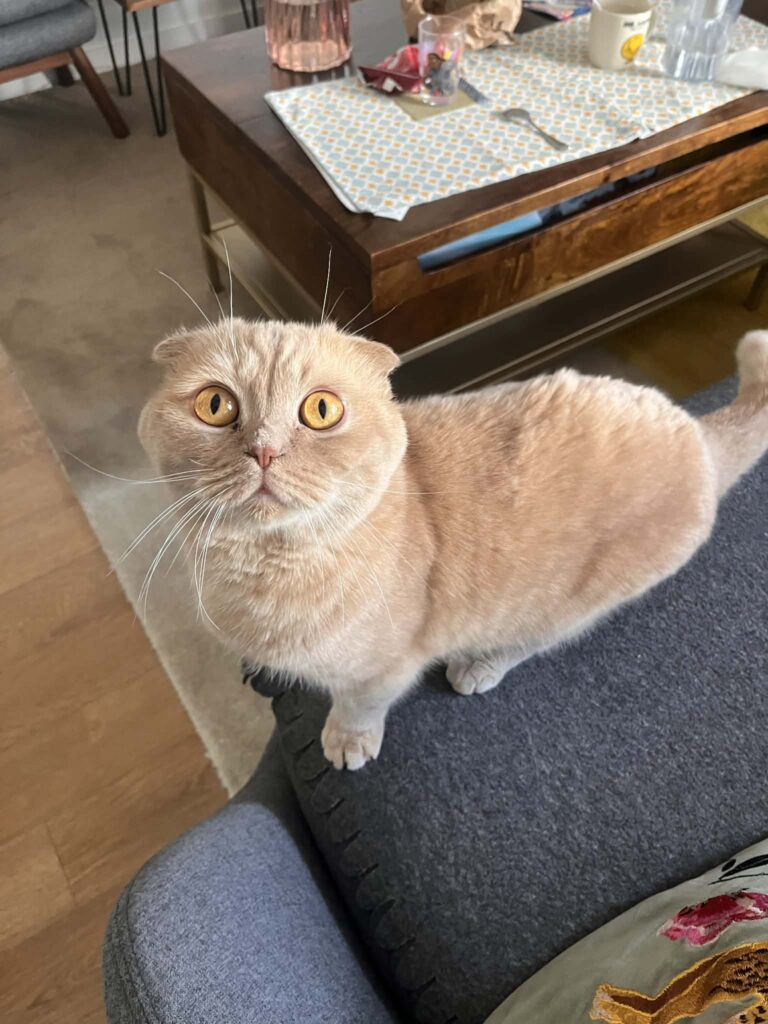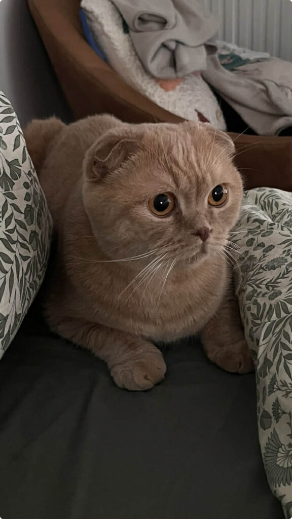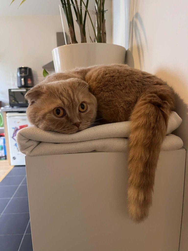 Boubou est un très beau chat typé Scottish Fold au pelage caramel. Agé de 5 ans, il a un caractère doux et équilibré.