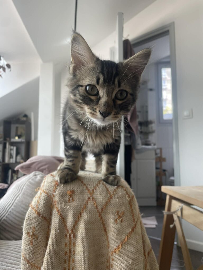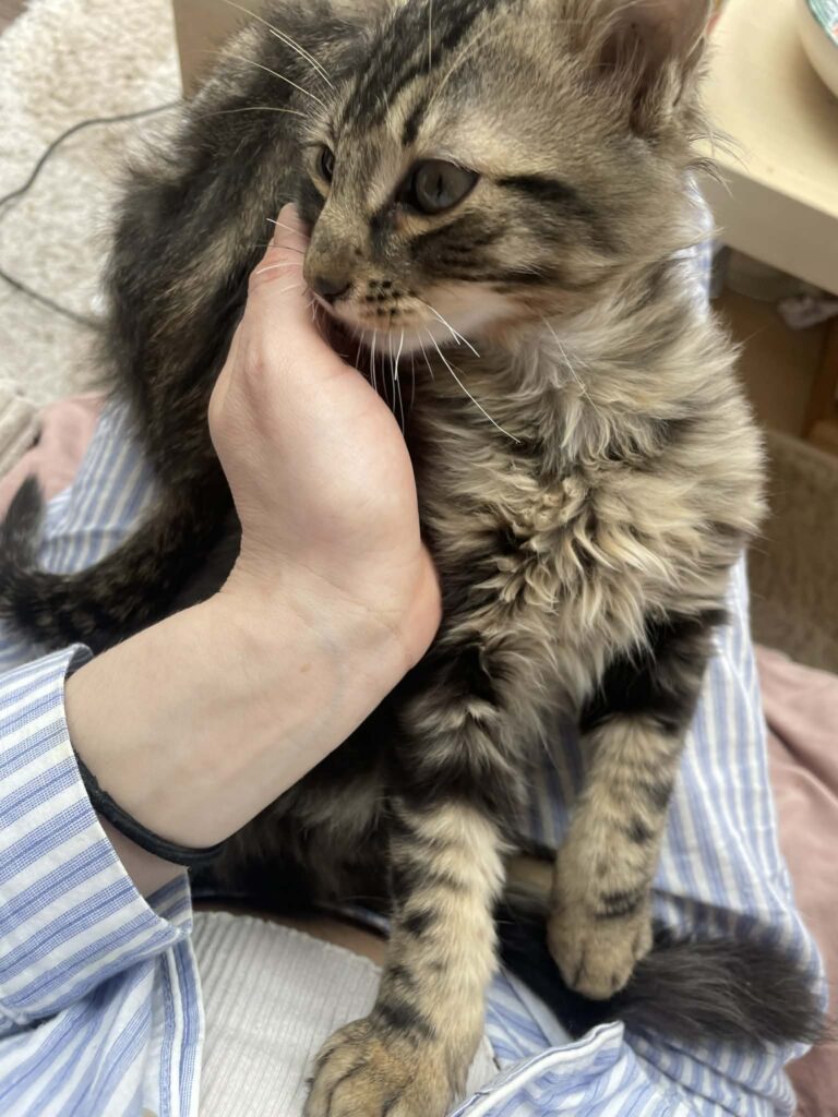 Iraku le roi des câlins ! Ikaru est un magnifique chaton tigré aux poils mi-longs, aussi doux que craquant.