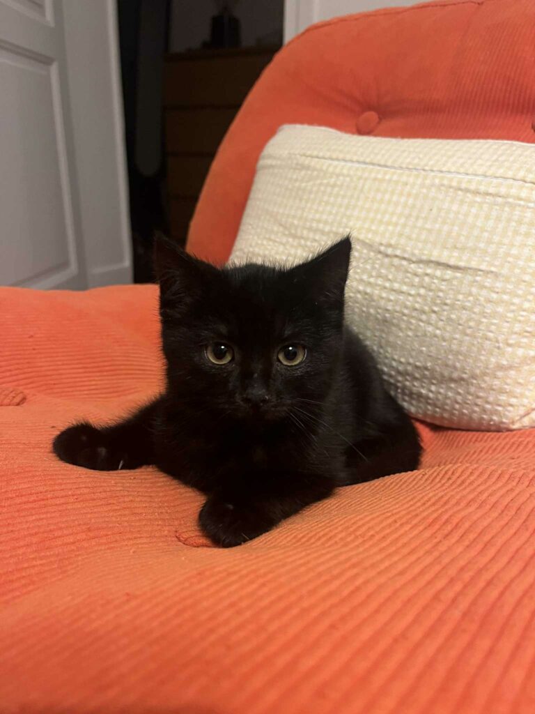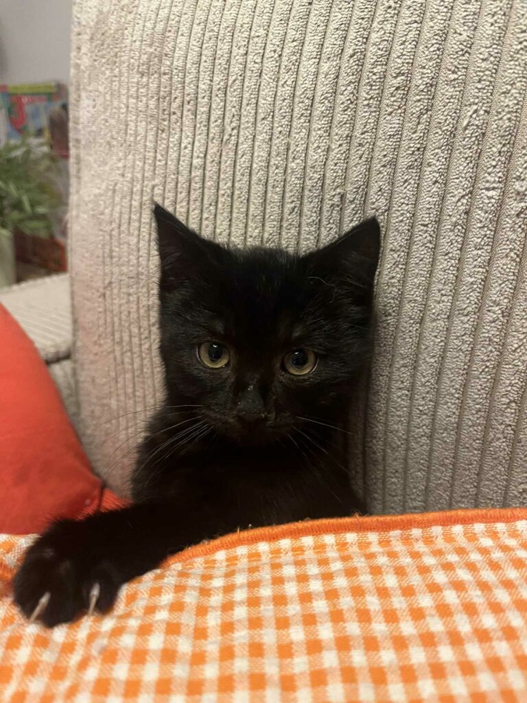 Krokmou une chatonne tout en douceur. Nous recherchons une famille douce et patiente pour Krokmou, une petite chatonne de 3 mois, à la fois sensible et incroyablement attachante.