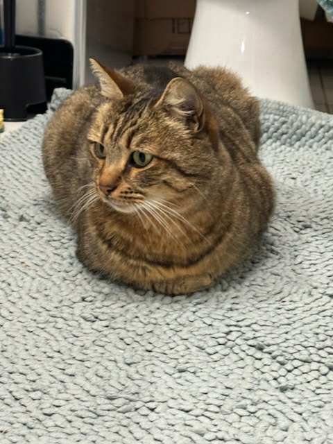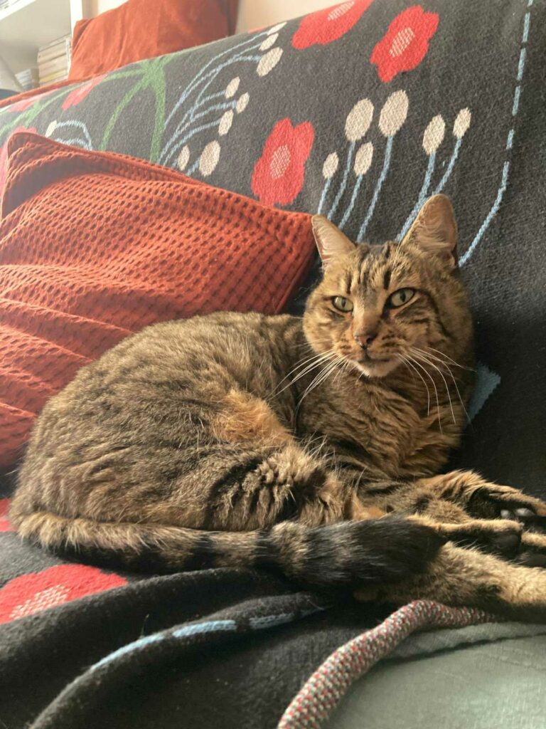 Luna, douce compagne de canapé en quête d’un foyer. Agée de 5 ans, Luna est une adorable chatte au poil court et à la jolie robe tigrée.