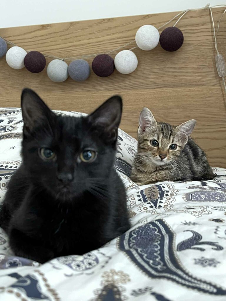 C’est une chatonne équilibrée (élevée par sa maman avec sa fratrie) et qui s’entend avec les autres chats. Elle est également très joueuse et tous les prétextes sont bons pour une partie de jeu notamment avec Sushito sa petite copine tigrée de 3 mois elle aussi à l’adoption.