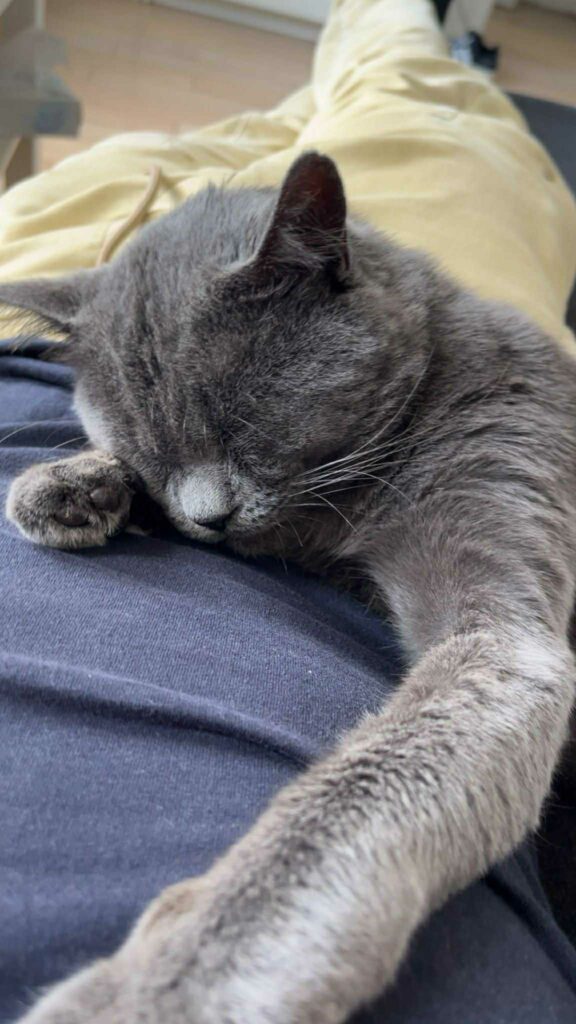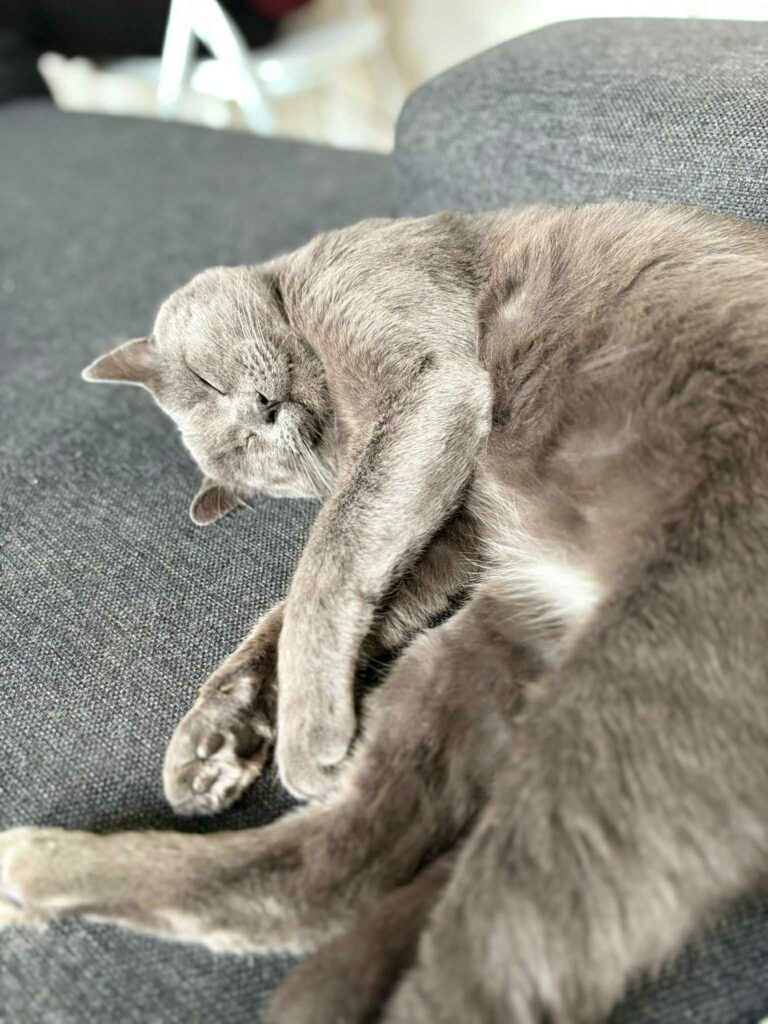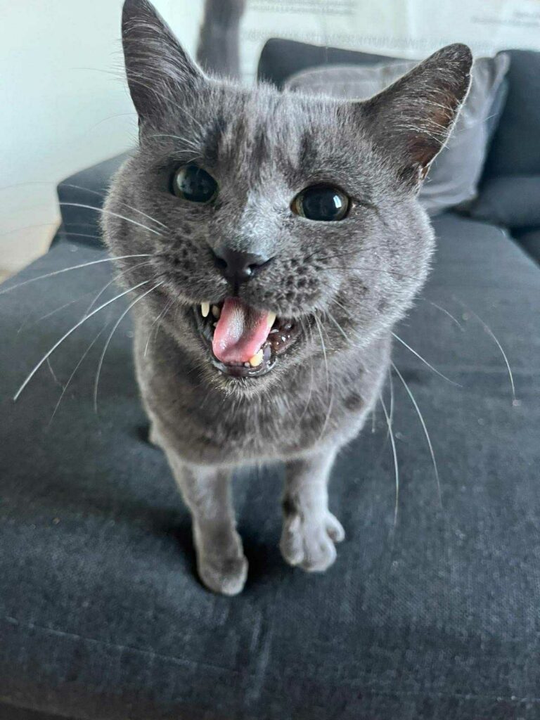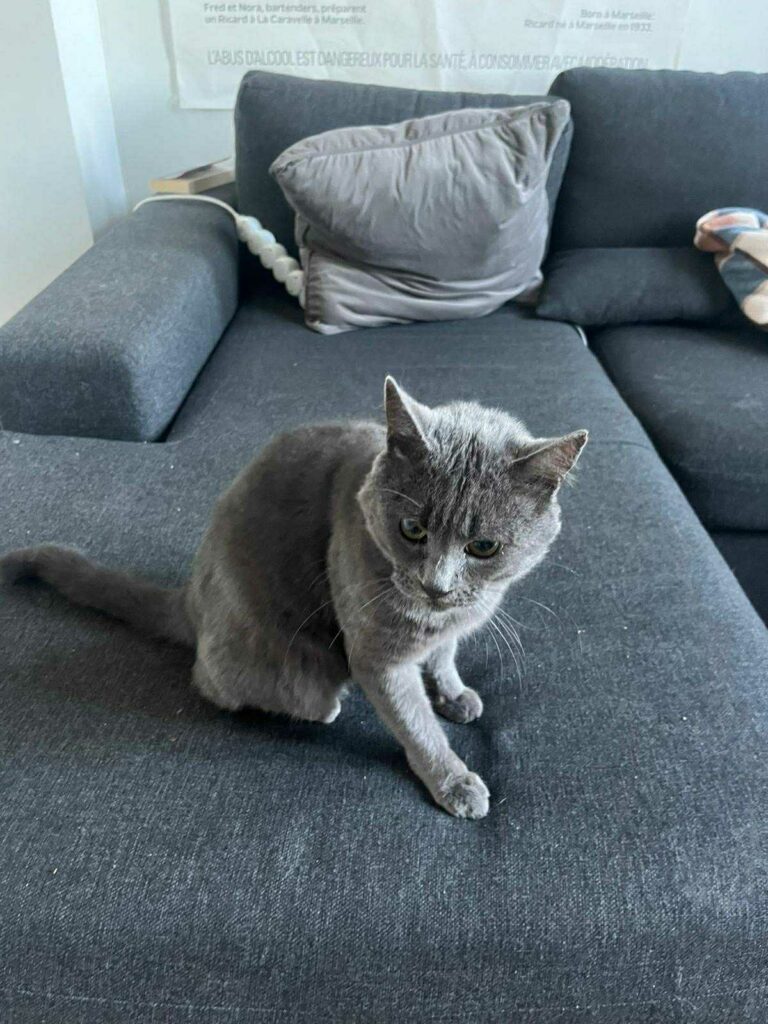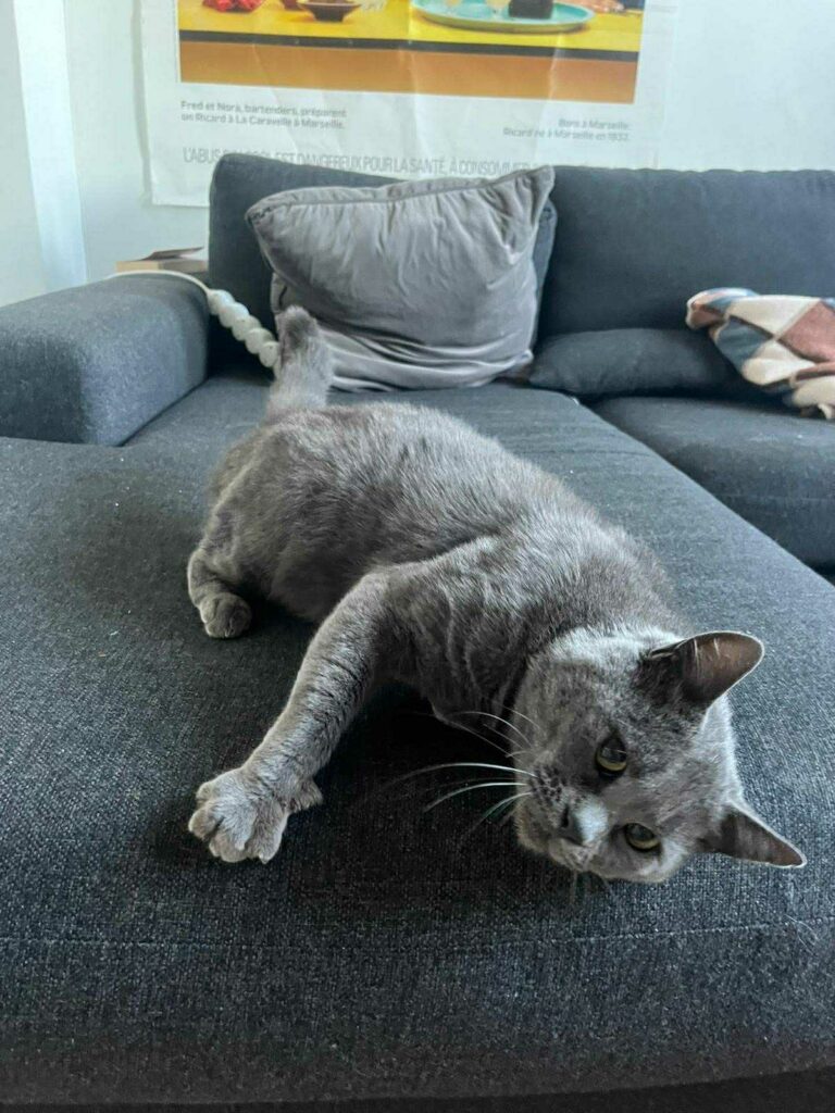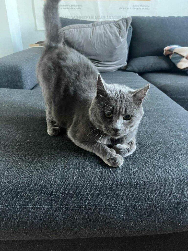 Mate beau chat gris totalement craquant ! Mate est un jeune chat plein de charme, âgé de 2 ans.