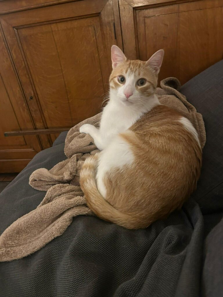 Ce magnifique jeune chat blanc et roux d’un an a un caractère aussi doux que son regard. Très câlin et proche de l’humain, il adore la compagnie et vous suivra partout dans la maison comme une petite ombre pleine de tendresse.