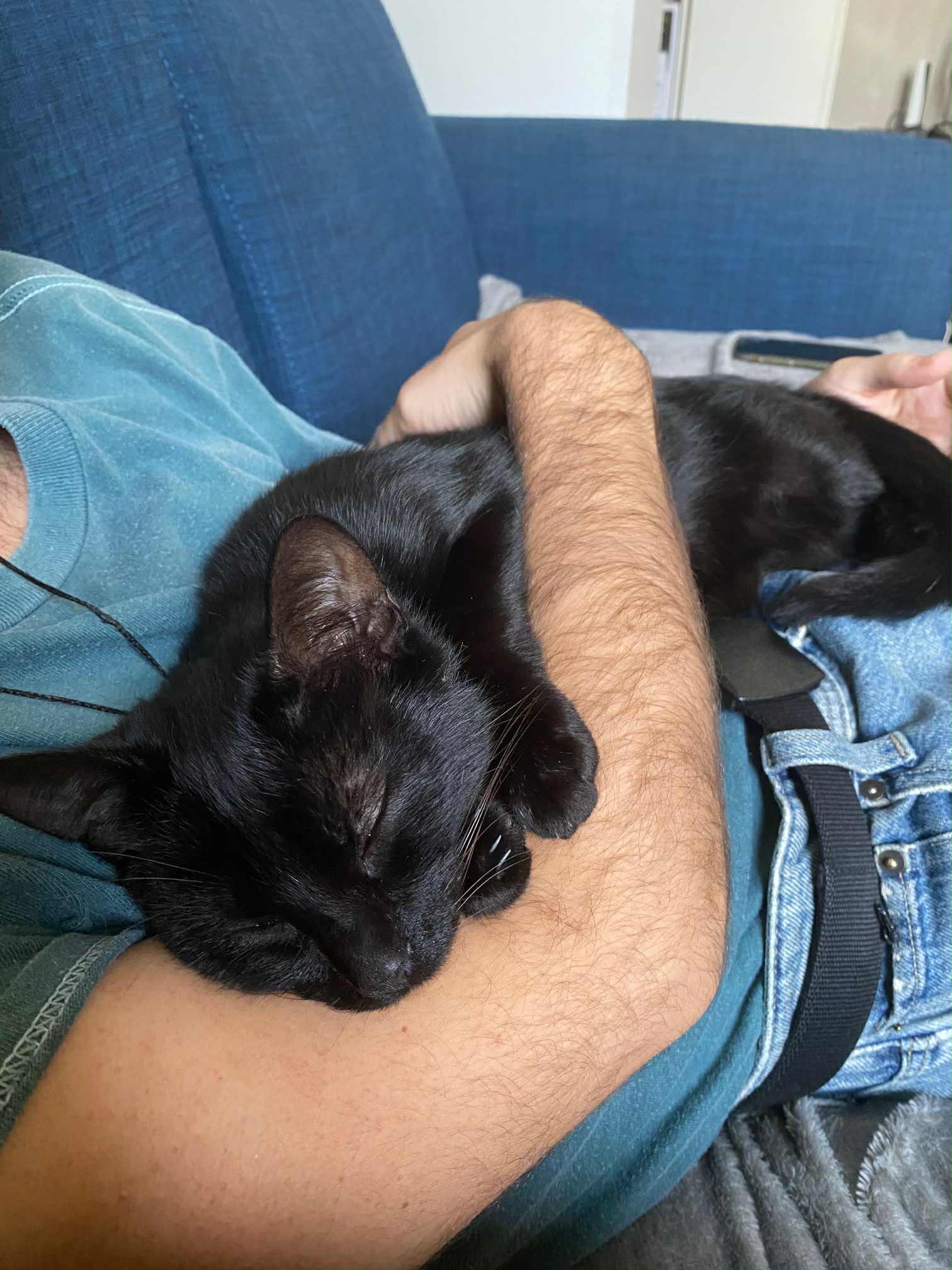 Moon est juste une présence apaisante et pleine de tendresse. Comme tous les jeunes chats, Moon a quand même son quart d’heure de folie… A ce moment là, elle se transforme en joueuse invétérée, courant après ses balles et s’amusant comme une petite folle… Avant de retourner se lover contre vous.