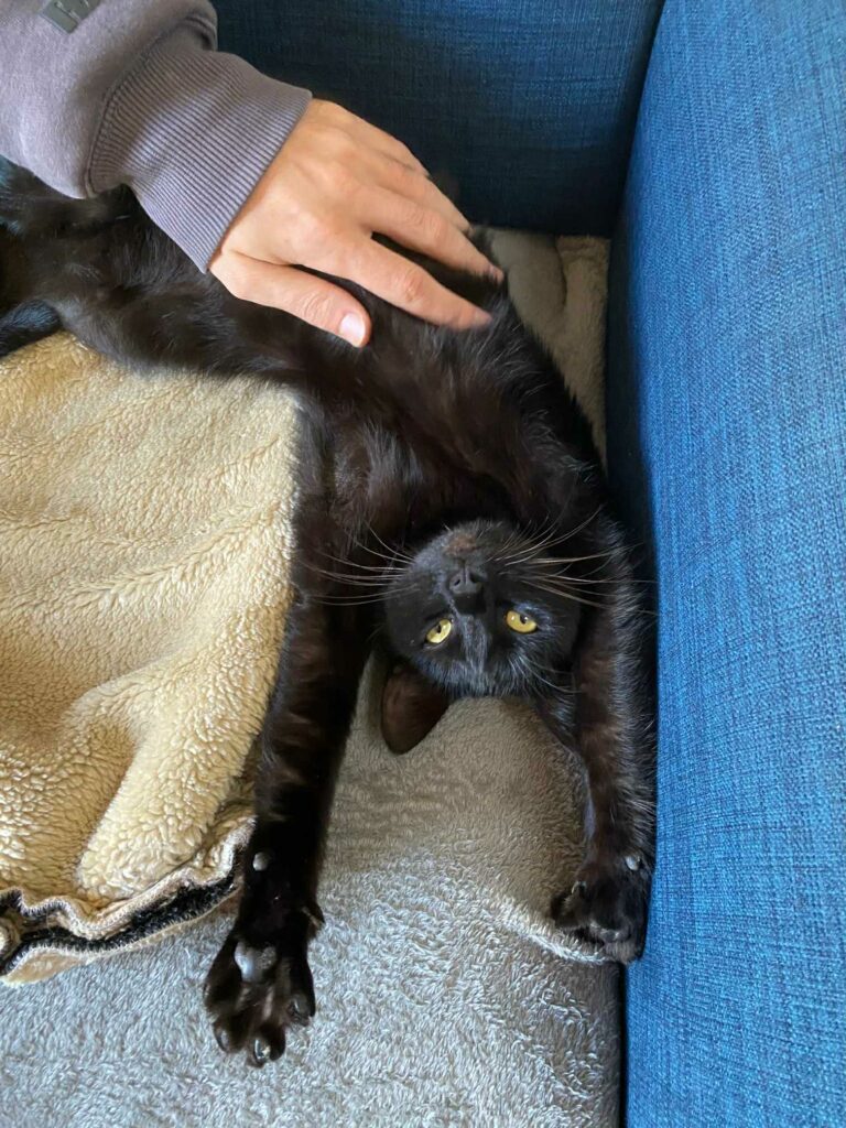 Moon cherche sa famille pour la vie ! Cette adorable minette noire fête tout juste ses 1 an et est prête à poser ses pattounes dans un foyer rempli d’amour.