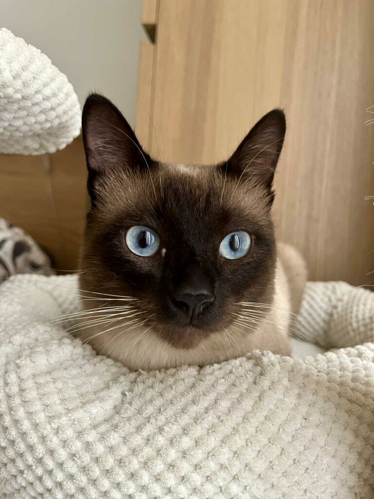 Mousse recherche une famille connaissant le caractère si particulier des siamois, leur besoin de présence, d’échanges et d’amour. Si vous cherchez un compagnon attentif, affectueux et profondément attachant, Mousse est peut-être le chat qu’il vous manquait.