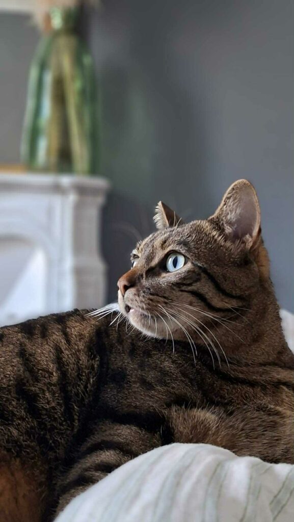Très câlin, proche de l’humain, il aime faire partie de votre quotidien et observer la vie de la maison avec attention… un vrai chef d’orchestre discret. Bonus rare et très apprécié : Oliver ne miaule pas le matin et respecte religieusement votre sommeil. Oui, oui c’est possible !