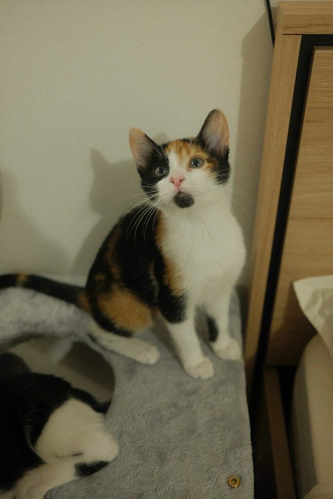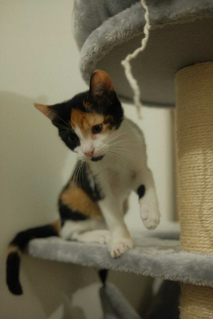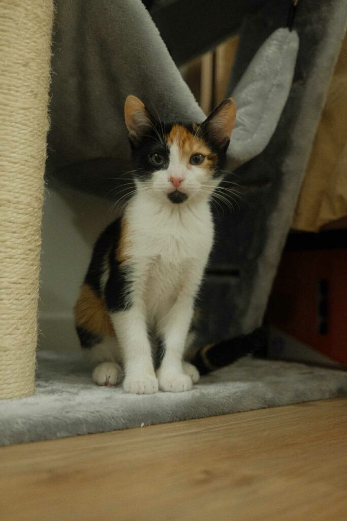 C’est une chatonne vive, joueuse, équilibrée et aussi une petite exploratrice. Un peu sur la réserve quand elle ne vous connait pas, elle serait bien dans un foyer qui a déjà un chat OU adoptée avec son frère Lilo (noir et blanc).