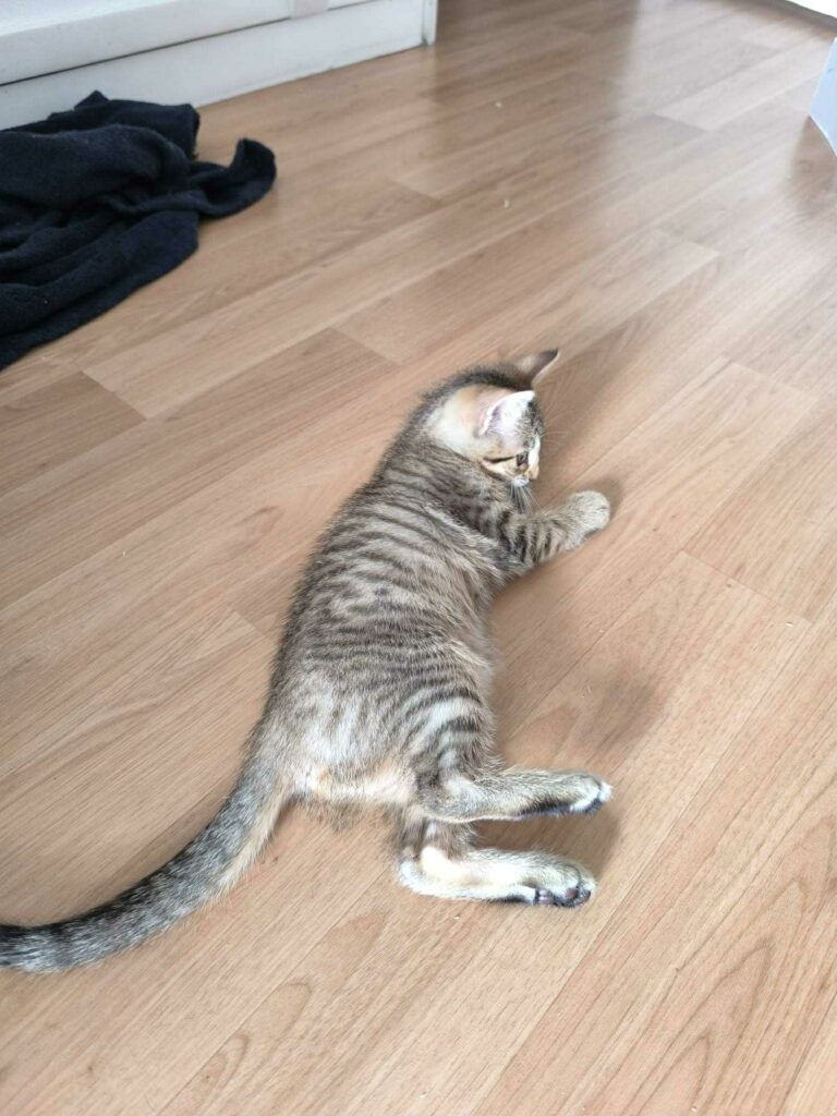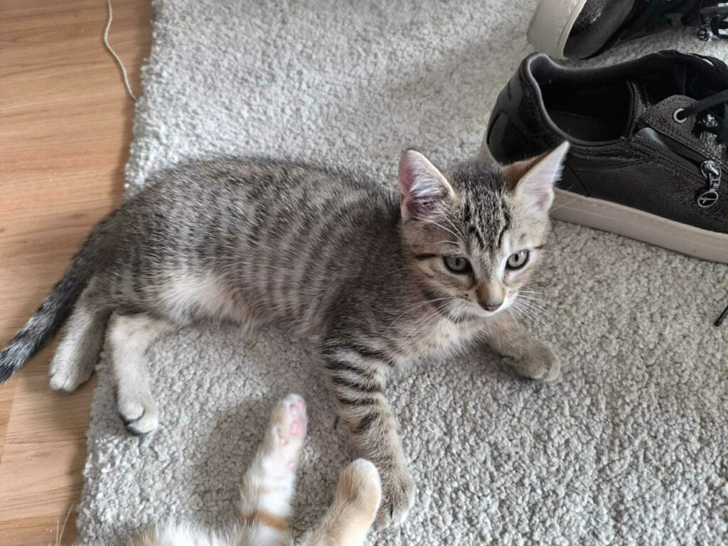 Avec son beau pelage tigré gris Rajah vous fera fondre. C’est un petit gourmand qui ne rate aucun repas même en pleine partie de jeux.