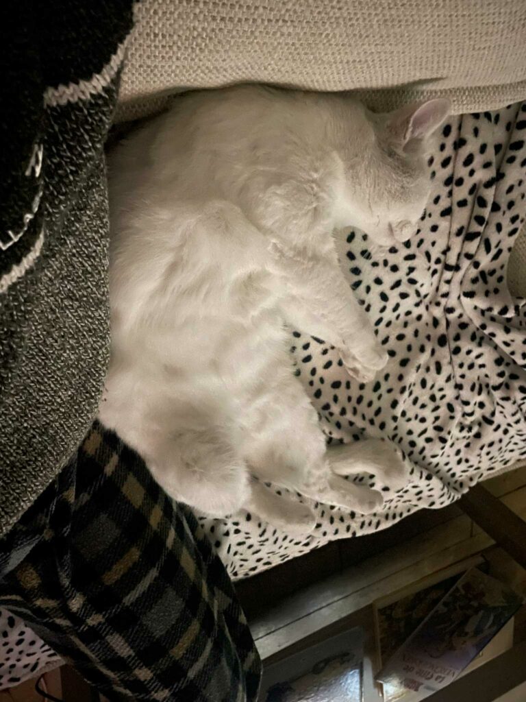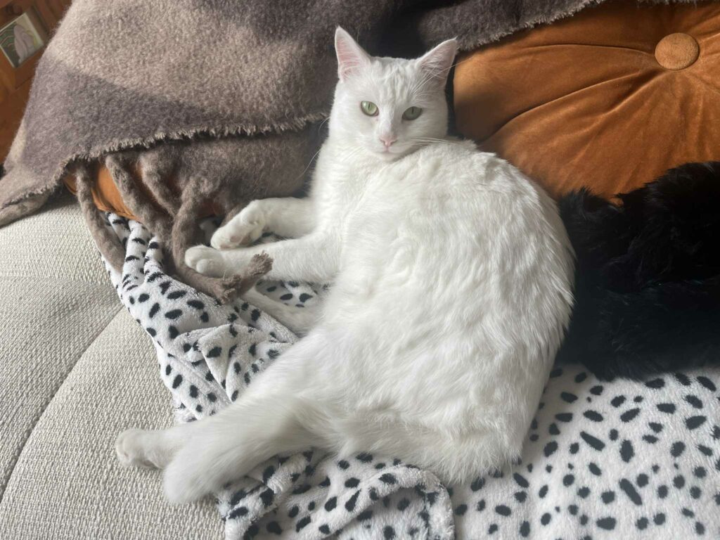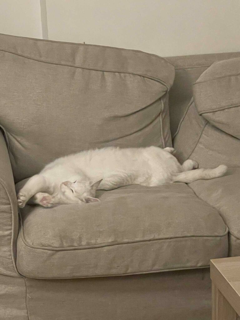 Il adore s’allonger de tout son long sur le dos pour vous inviter à lui frotter le ventre, c’est un vrai charmeur. Snow est le compagnon idéal pour une personne à la recherche d’un chat câlin et tranquille.