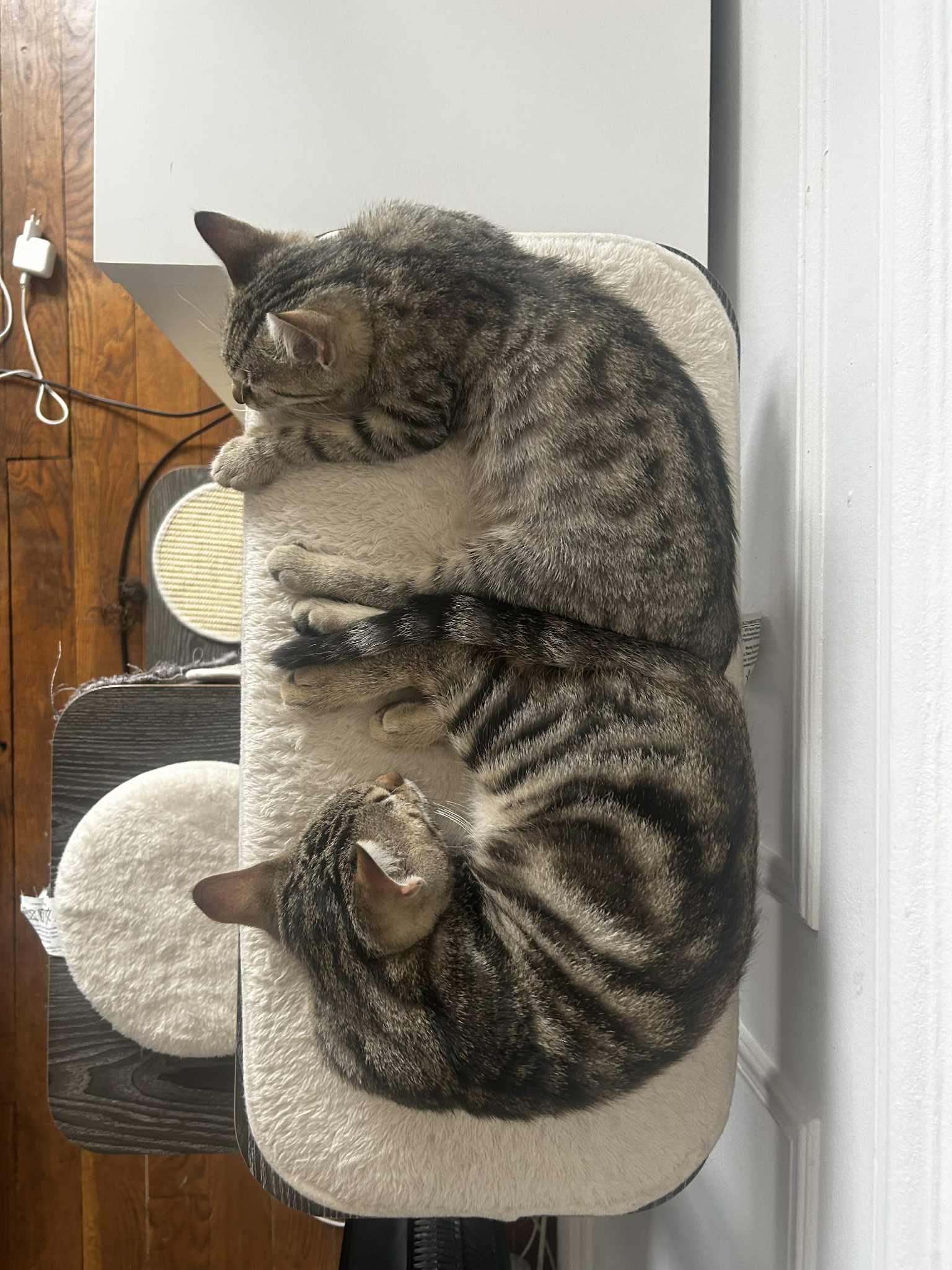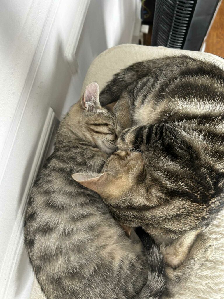 Strabi et Loki, deux frères issus de la même portée, sont de véritables petites machines à ronron. On dirait que Strabi est plus âgé, mais il n’en est rien : âgés de 4 mois, ces deux-là sont inséparables.