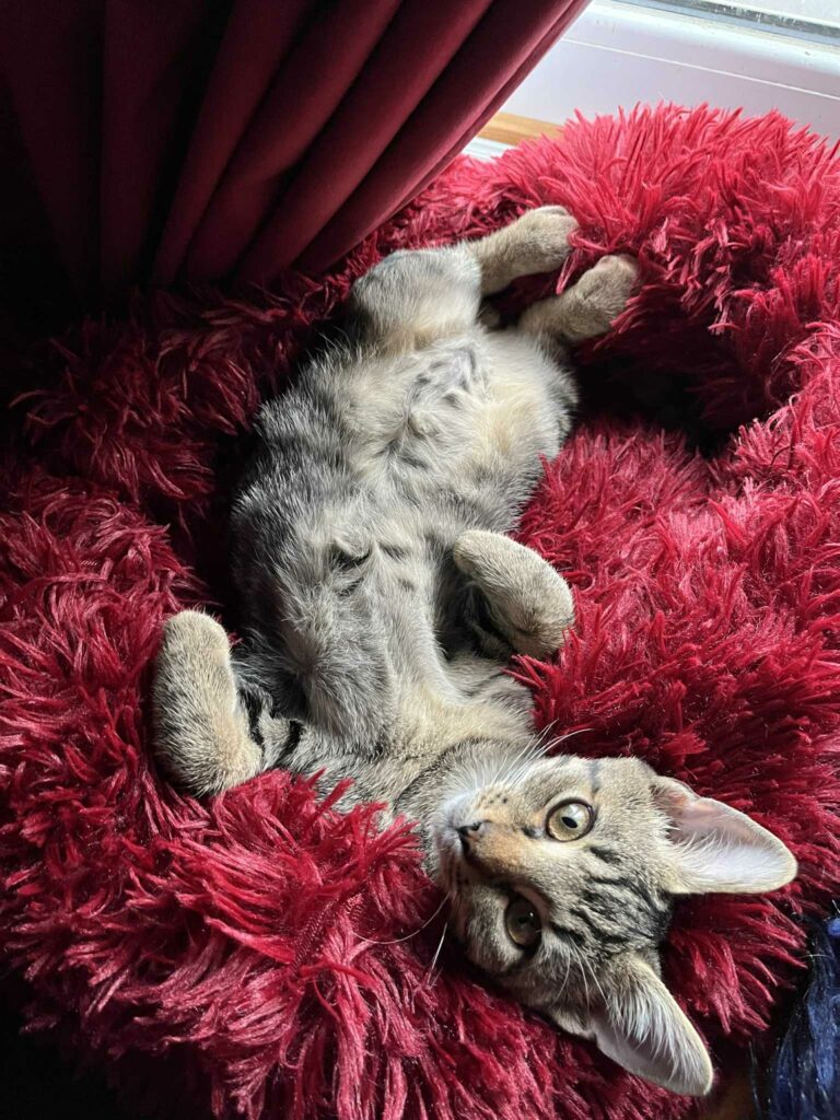 Elle a perdu sa vie en les a défendant courageusement. Victor est un chaton sociable aussi bien avec les humains qu’avec les autres chats. Il est joueur, pas farouche avec les inconnus, adore les séances de câlins et ronronne pour un rien.